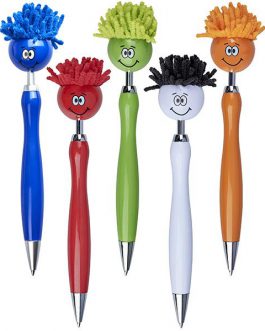 "הראש המסתובב" עט פלסטיק קומי ראש כדורי עם שיער לניקוי מסכי מגע