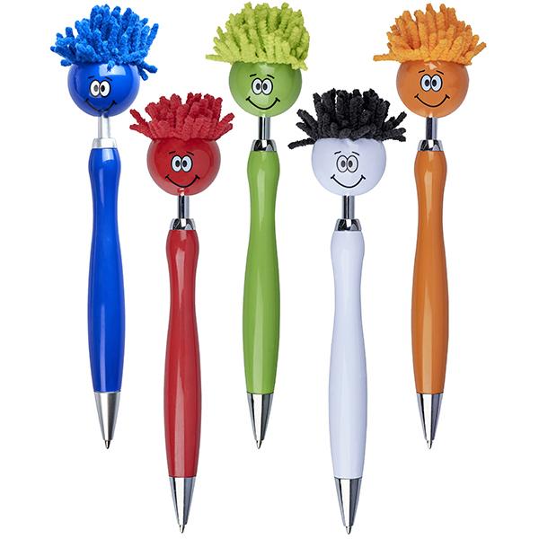 "הראש המסתובב" עט פלסטיק קומי ראש כדורי עם שיער לניקוי מסכי מגע